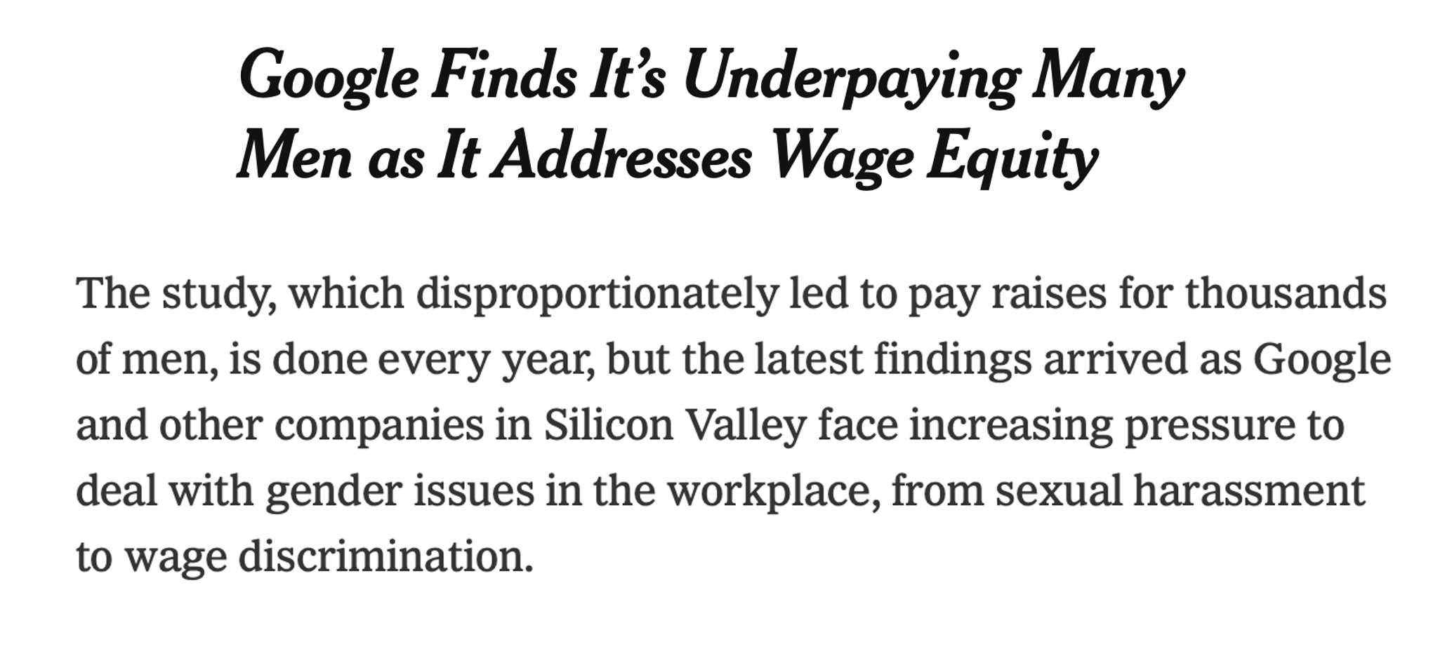 Die New York Times berichtete im März 2019 über eine Studie zum geschlechterspezifischen Lohngefälle bei Google.1