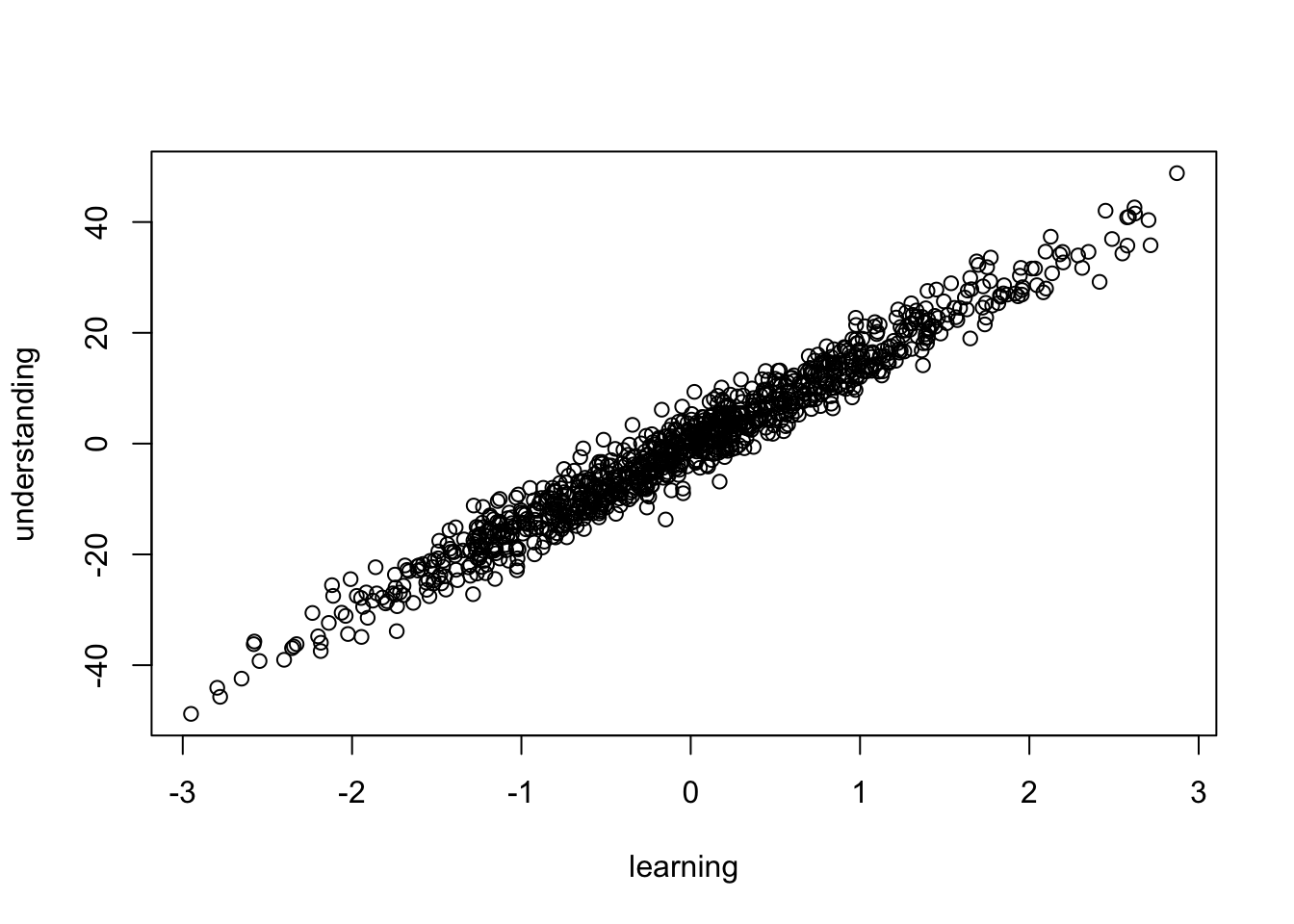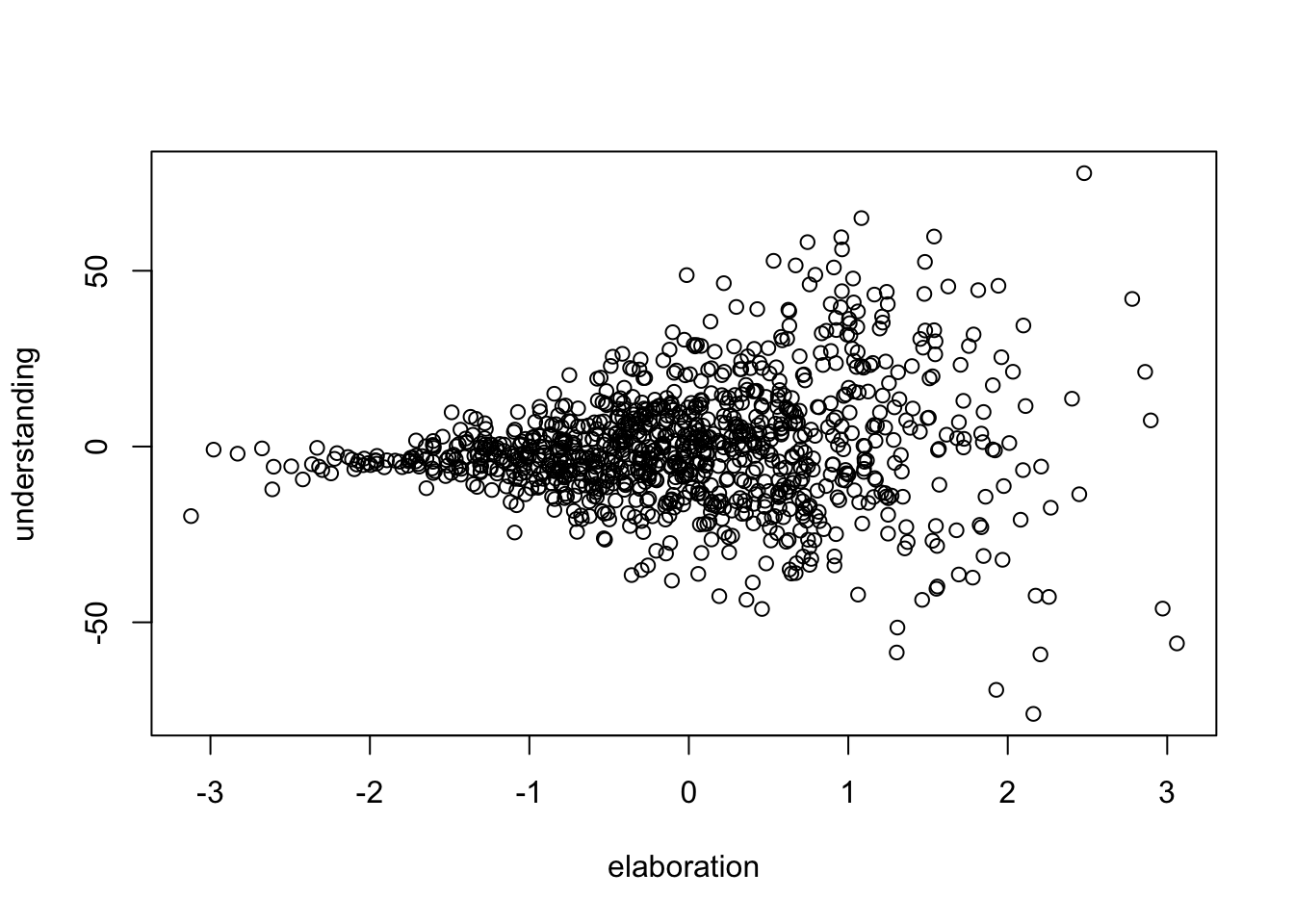 Der Plot weist auf einen linearen Trend hin, dass mit steigendem Lernen ein stetig steigendes Verständnis einhergeht.