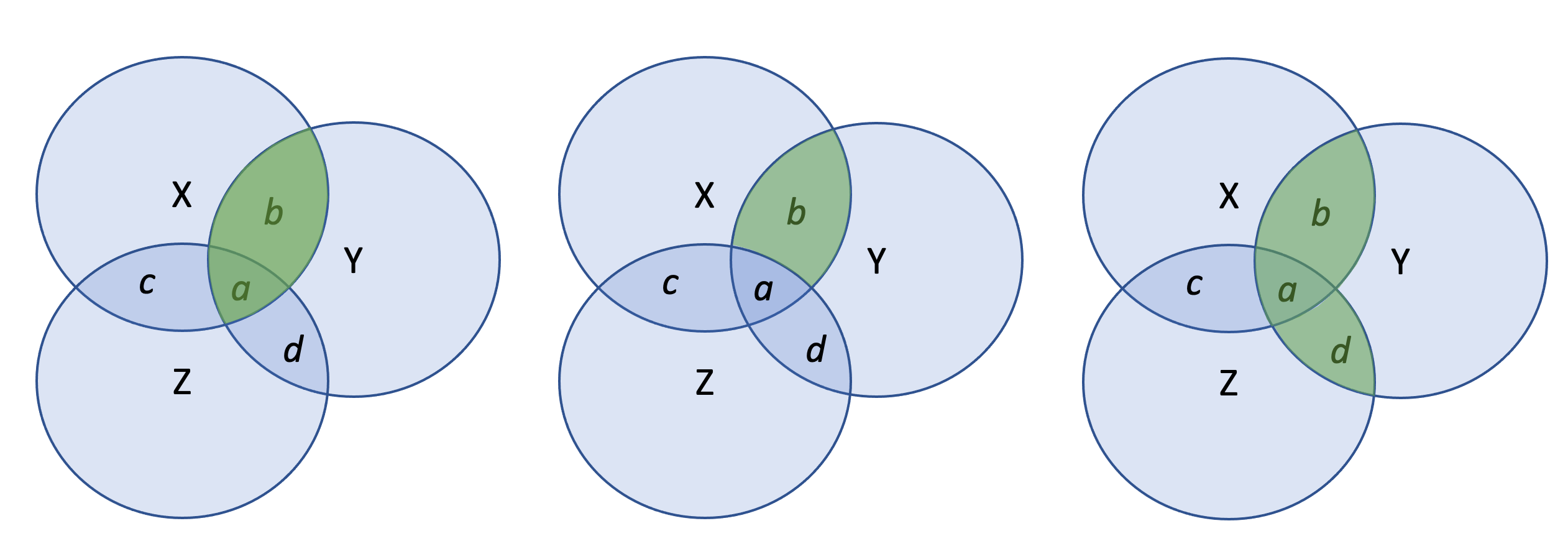 Offensichtlich gibt es hier einen Bereich (a), der die Schnittmenge aller drei Varianzen repräsentiert.