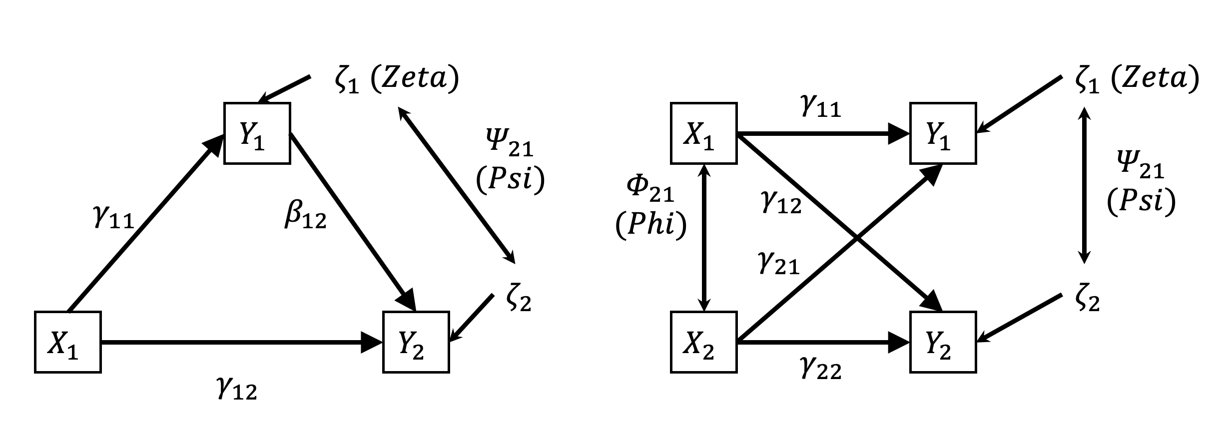 \[Y_1=\gamma_{11}X_1+\gamma_{21}X_2+\zeta_{1}\] \[Y_2=\gamma_{12}X_1+\gamma_{22}X_2+\zeta_{2}\]