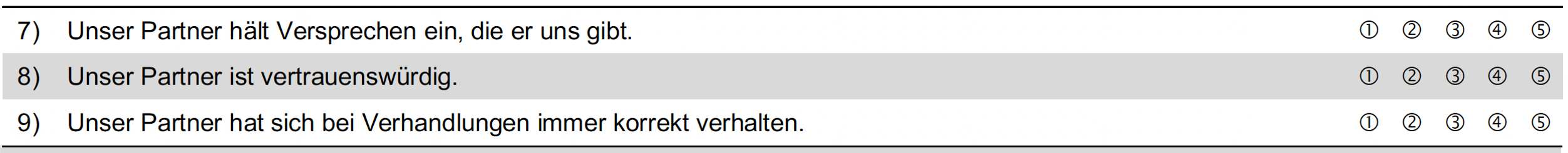 Die Messung von Vertrauen, wie wir sie hier eingesetzt hatten, geht auf Coote, Forrest & Tam (2003) zurück, welche diese im Kontext der Wertschöpfungsketten verwendet haben.