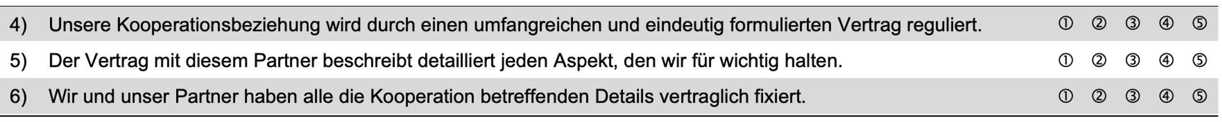 Unsere erste Annahme ist es also an dieser Stelle, dass sich hohes Vertrauen in den Kooperationspartner in einer höheren Bewertungen der drei Indikatoren wiederfindet und das Unternehmenskooperationen, die eine hohe Vertragskomplexität aufzeigen, auch bei dem befragten Unternehmen zu einer höheren Bewertung der entsprechenden Indikatoren führen.