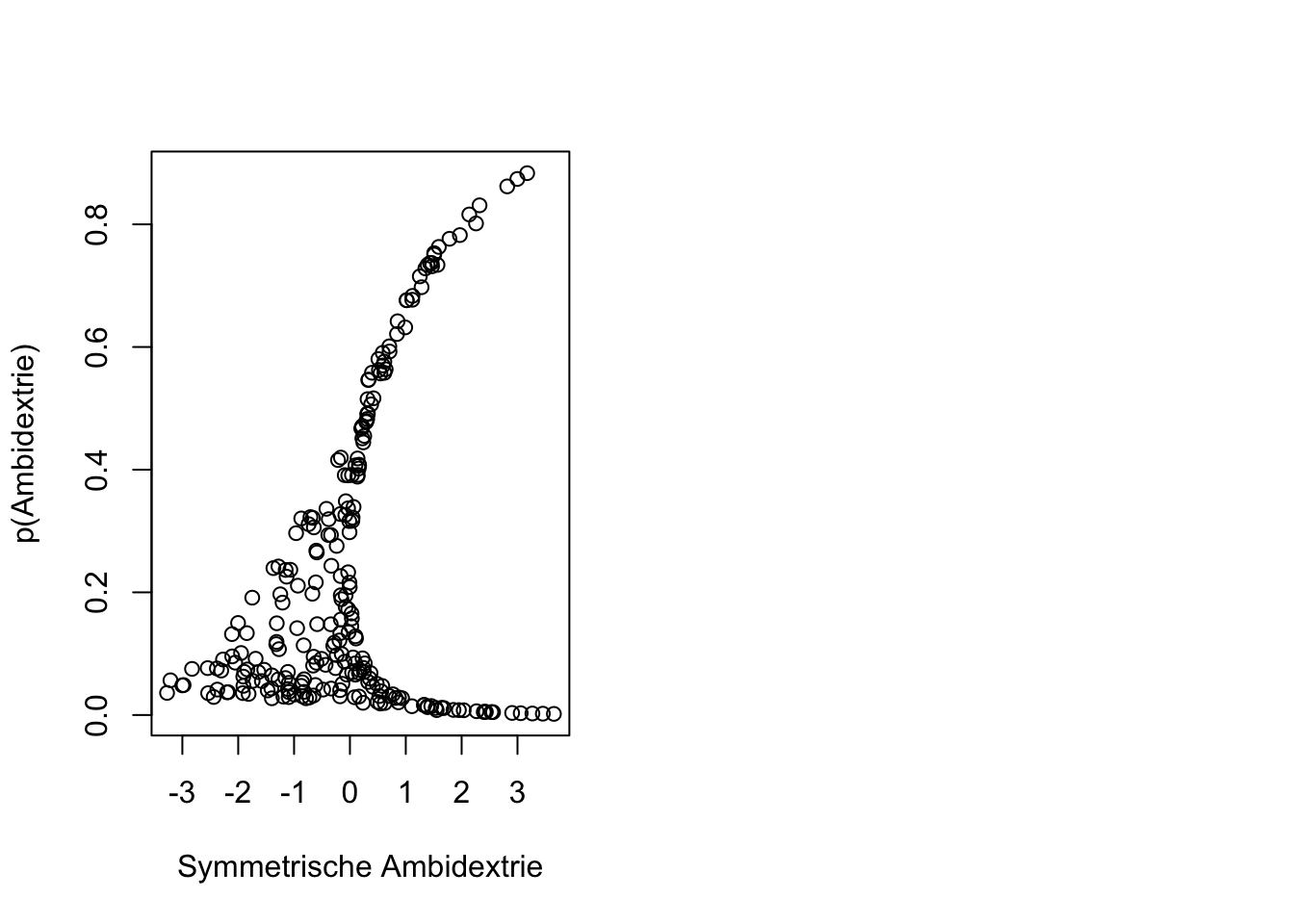Umgekehrt zeigt \(\beta_2\) den Beitrag von \(z\) zu \(\hat{y}\) auf, wenn \(x\) einen Zahlenwert von Null aufweist. Die Variable Trainings weist einen Zahlenbereich von \(1.37 ≤ x ≤ 4.99\). Auch der Koeffizient \(\beta_2\) indiziert also einen Beitrag zu \(\hat{y}\), der sich auf einen Wert außerhalb des empirisch Gemessenen bezieht.