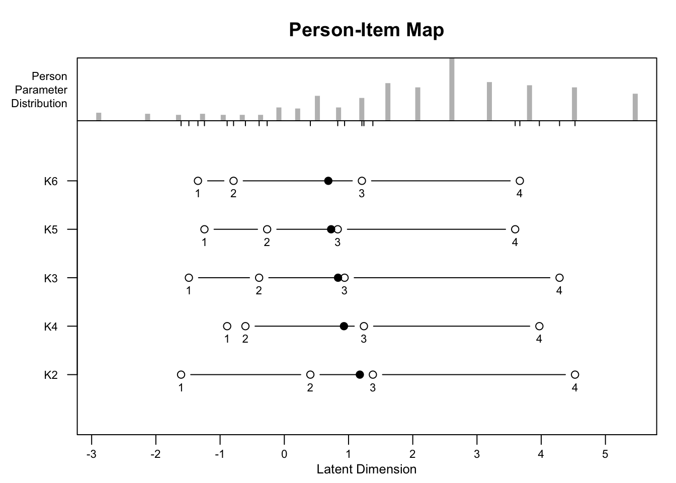 \[ ME_{Kompetenz|Training; Erfahrung}= 2.50 + (-0.57 \cdot Erfahrung) \] wobei: \(1.01 ≤ Erfahrung ≤ 4.99\)