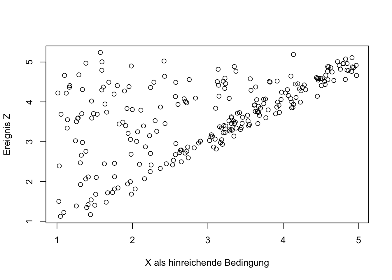 Gelegentlich gibt die charakteristische Darstellung im Streudiagramm Hinweise auf einen Zusammenhang in Form einer hinreichenden Bedingung.