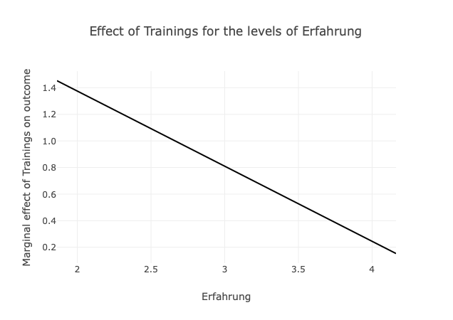 Bezogen auf das obrige Beispiel wird der marginale Effekt von Trainings auf die Kompetenz, abhängig von der Vorerfahrung bestimmt als: