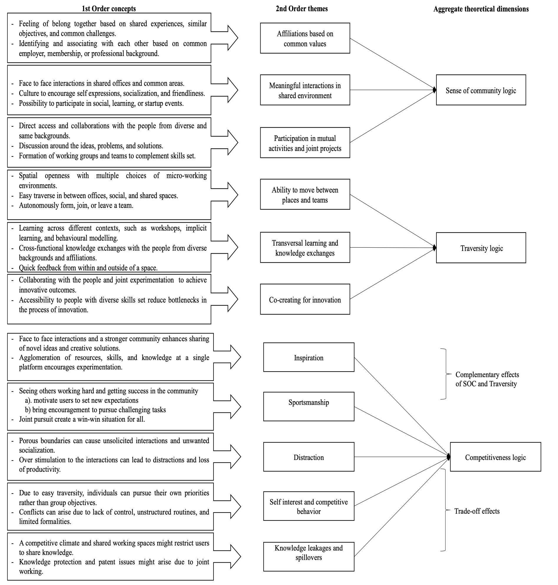 Nach Gioia et al. (2013) können die vorgefundenen Themen und Konzepte in einem abschließenden Schritt übergeordneten Dimensionen zugeordnet und die resultierende Datenstruktur sollte wie folgt dargestellt werden: